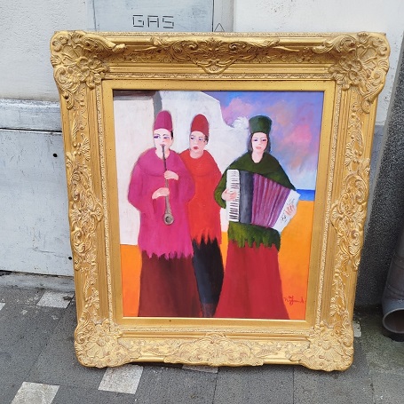 Quadro olio su tela di Raffaele Frumenti - titolo Musici 50x60 cm - misure con cornice 85 x 75 cm . Con certificato di garanzia Info 3495611398