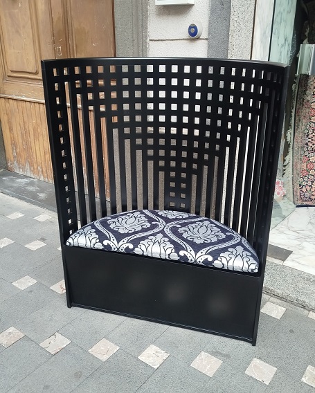 Poltrona tronetto modello stile Charlees Rennie Mackintosh , con schienale a graticcio finitura nero. Interno contenitore con cuscino del sedile imbottito, rivestito in tessuto. Ottima qualità e ottimo stato. Misure 120 x 45 x 93 cm. Info 349 561 1398