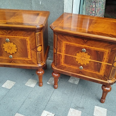 Coppia di comodini lombardi di linea Luigi XVI in noce, bois de rose e altre essenze. Ottima manifattura e ottimo stato. Misure 47 x 38 x 67 h. cm. Info 3495611398