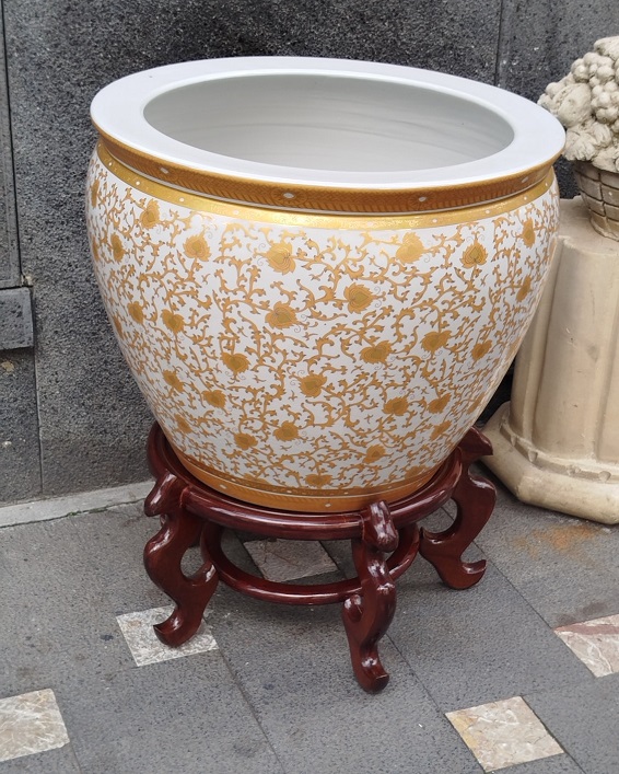 Grande cachepot porcellana cinese - base in legno - misure totali 63 x 51 cm - diametro bocca interna 39,5 cm . Info 3495611398