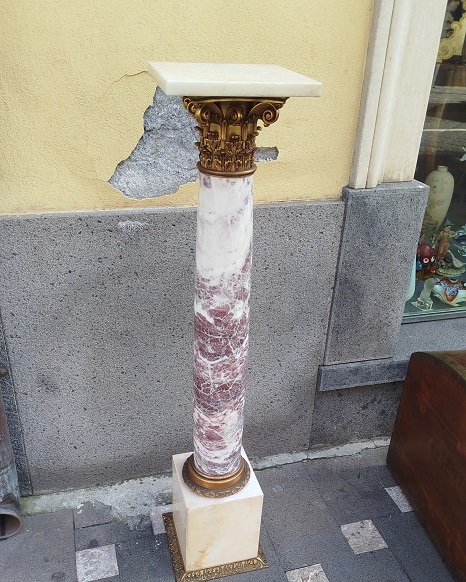 Colonna in marmo,bronzo e legno dorato vintage. Misure 116 altezza - piano 24 x 24 cm . Info 3495611398