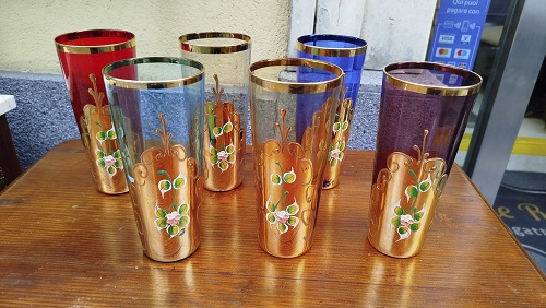 Set sei bicchieri vetro di Murano vintage. Ottimo stato. Misure 16 x 7 cm