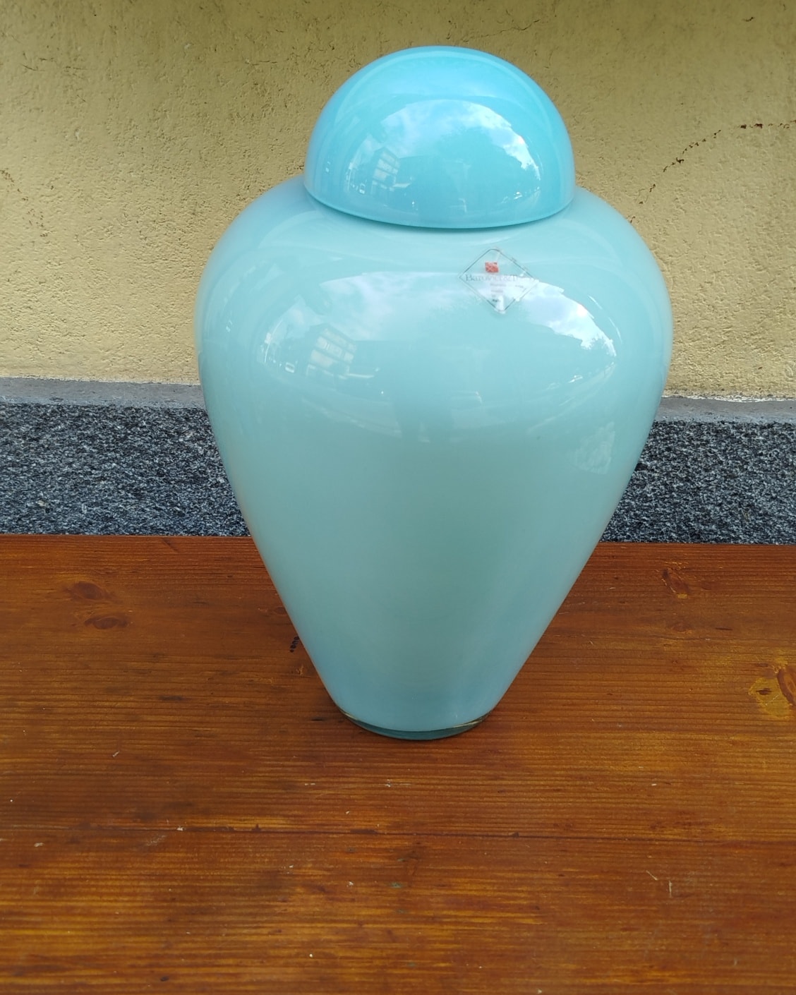 Vaso poutiche Barovier & Toso Murano anni 80'. Misure 29 x 19 cm . Firmato sotto la base come da foto. Piccolissima imperfezione sul bordo interno del coperchio come da foto Info al 3495611398