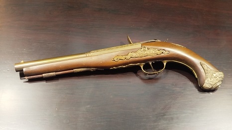 Riproduzione vintage di pistola ad avancarica antica. Legno e metallo mis. 42 x 16 cm