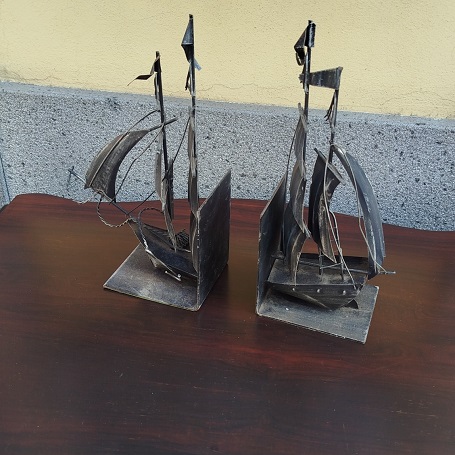 Coppia fermi libri vintage ferro battuto soggetto veliero misure 28 x 16 x 9 cm