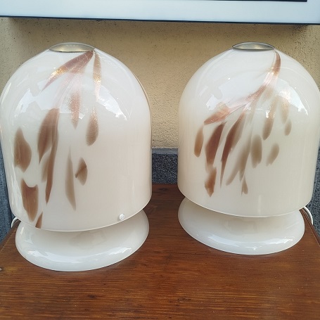 Coppia di lampade anni 40' vetro di Murano e ottone. Funzionanti. Misure 20 x 13 cm