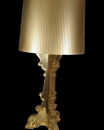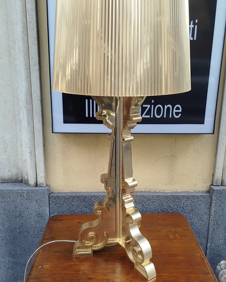 Lampada Kartell Bourgie oro di Ferruccio Laviani anno 2004. Diametro- 37 cm. Altezza - 68-78 cm. Info 3495611398