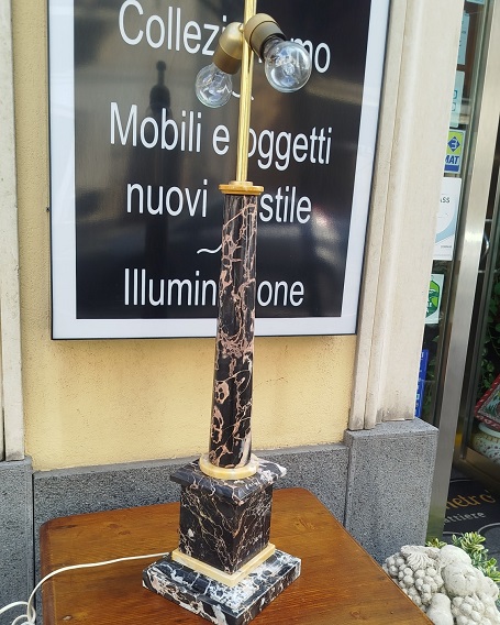Lampada vintage interamente in marmo ( e ottone ) - due luci - ottima qualità - da ripristinare il paralume. Misure 87 x 18 x 18 cm . Info 3495611398