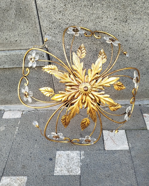 Applique in ferro battuto anni 70 finitura oro stile artigianato fiorentino a due luci. Misure 40x29 cm . Disponibile la coppia