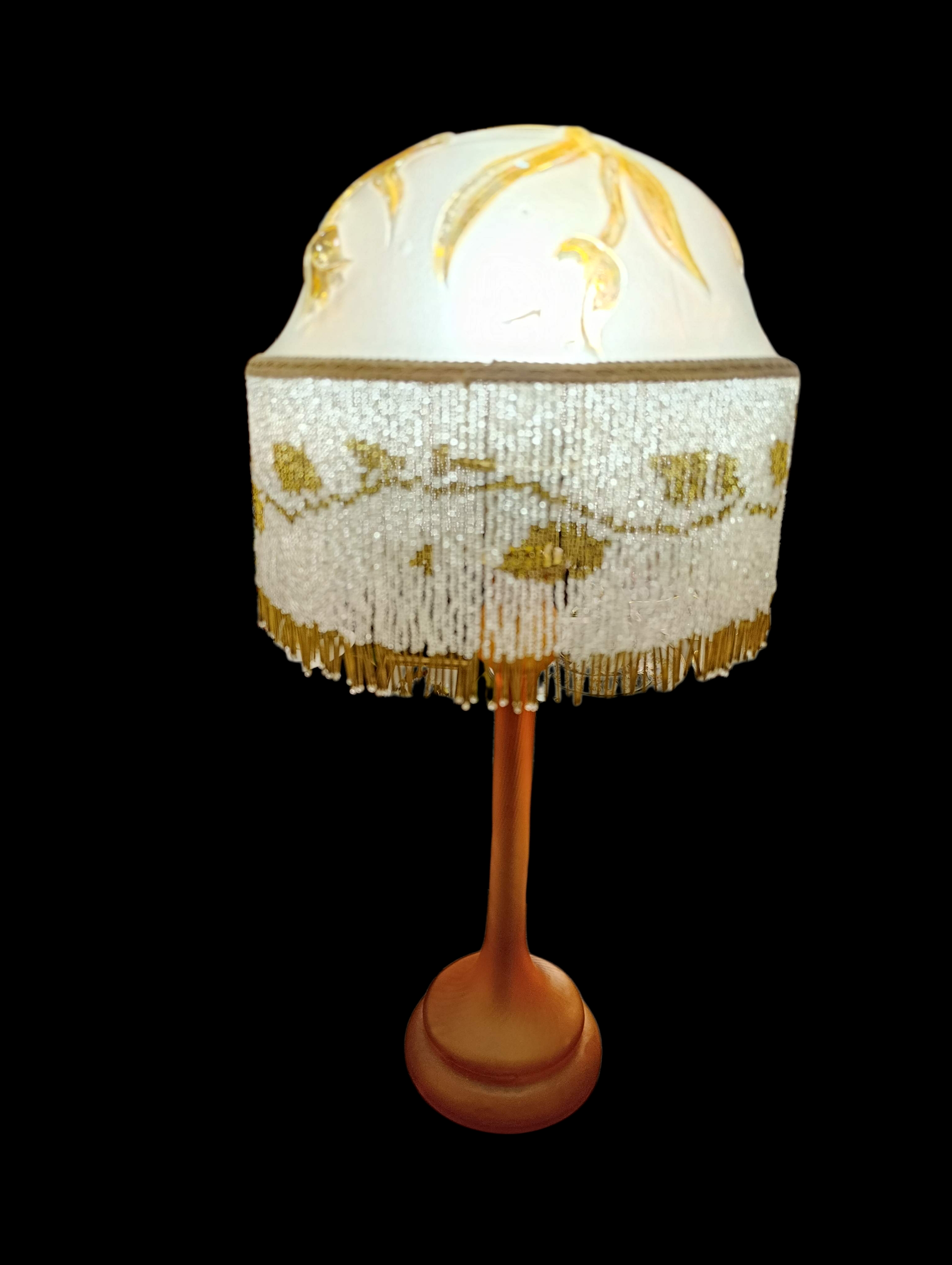 Lampada vintage vetro con paralume con perline firmata Ghinza.