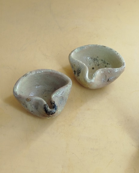 Coppia lucerne antiche manifattura di Caltagirone. Misure 8x8x4 cm