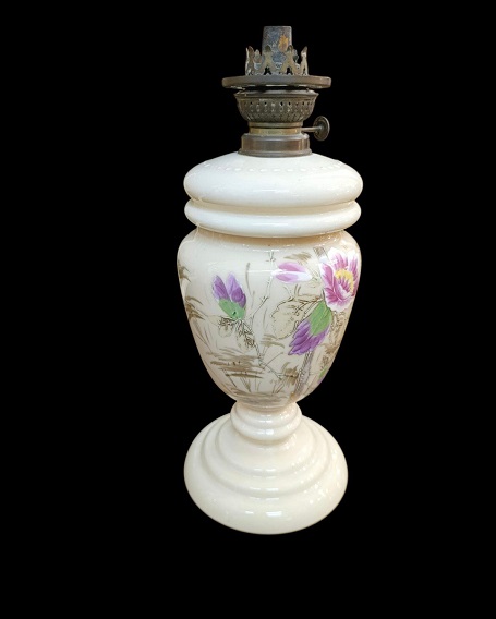 Lume antico a petrolio in vetro opalino. Misure 37 cm . Info 3495611398