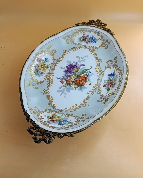Alzata centrotavola porcellana Limoges e bronzo vintage misure 37 x 23 x 6,5 cm