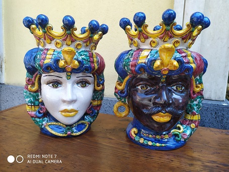 Coppia teste di moro ceramica di Caltagirone