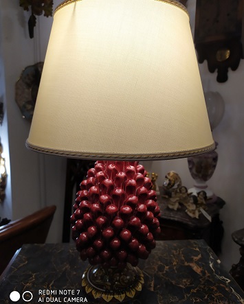 Bellissime pigne in ceramica di Caltagirone firmata Verus. Mod.p009 Lux (oro zecchino - rosso rubino) da 40 cm.Il prezzo è riferito alla singola pigna