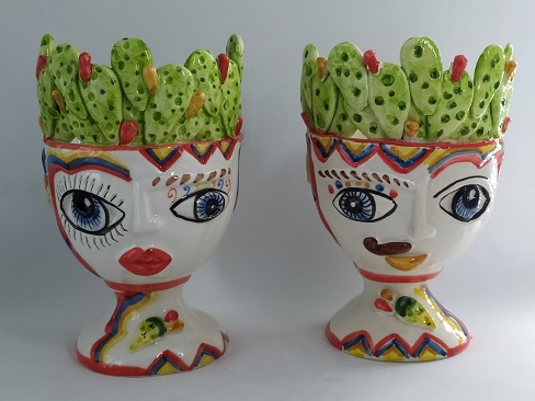 Coppia teste di moro ceramica di Caltagirone mod. Fichi d'india.h. 12 cm