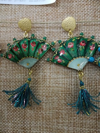 Coppia di orecchini "ventaglio" fiorellini su fondo. Dipinta a mano su ceramica. Ottima qualità