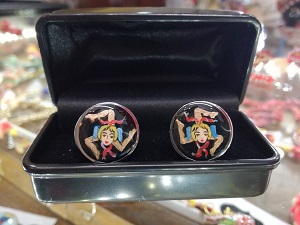 Gemelli in acciaio tondi dipinti a mano soggetto Trinacria Siciliana.