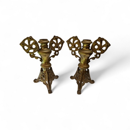 Coppia candelabri inizi 900' ottone e bronzo misure 17 x 11 cm