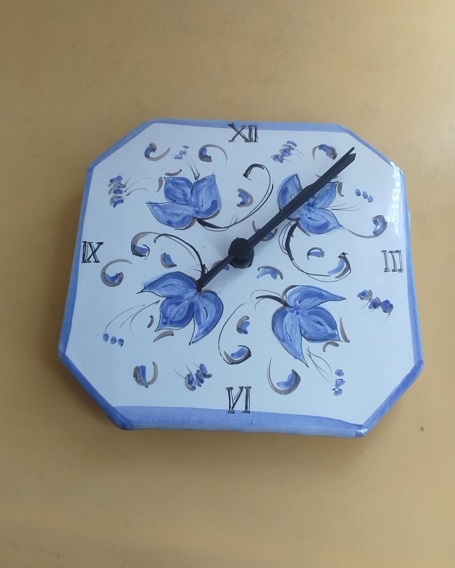 Orologio da parete ceramica dipinta a mano - misure 16,5 x 17 cm