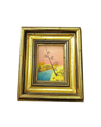 Quadretto vintage mini pittura soggetto naif - misure con cornice legno 14x12x3,5cm